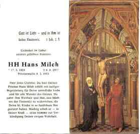 H.H. Pfarrer Milch fand für sich und seine hochbetagte Mutter eine Wohnung in Wiesbaden. Dort geschah am 8. August 1987 das für uns alle entsetzliche Unglück, die Ermordung dieses Priesters durch einen geisteskranken jungen Mann, um den er sich gekümmert hatte.